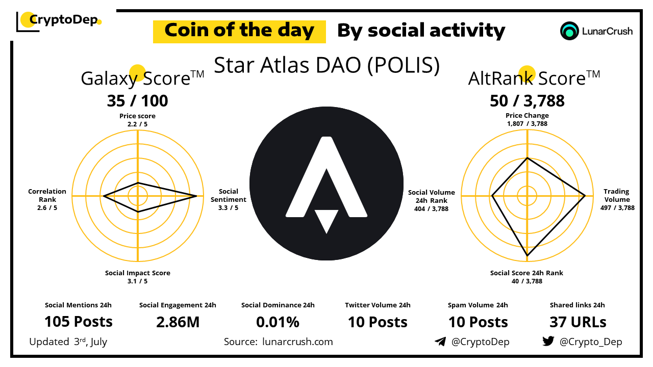 Coin of the day by social activity - Star Atlas DAO (POLIS).