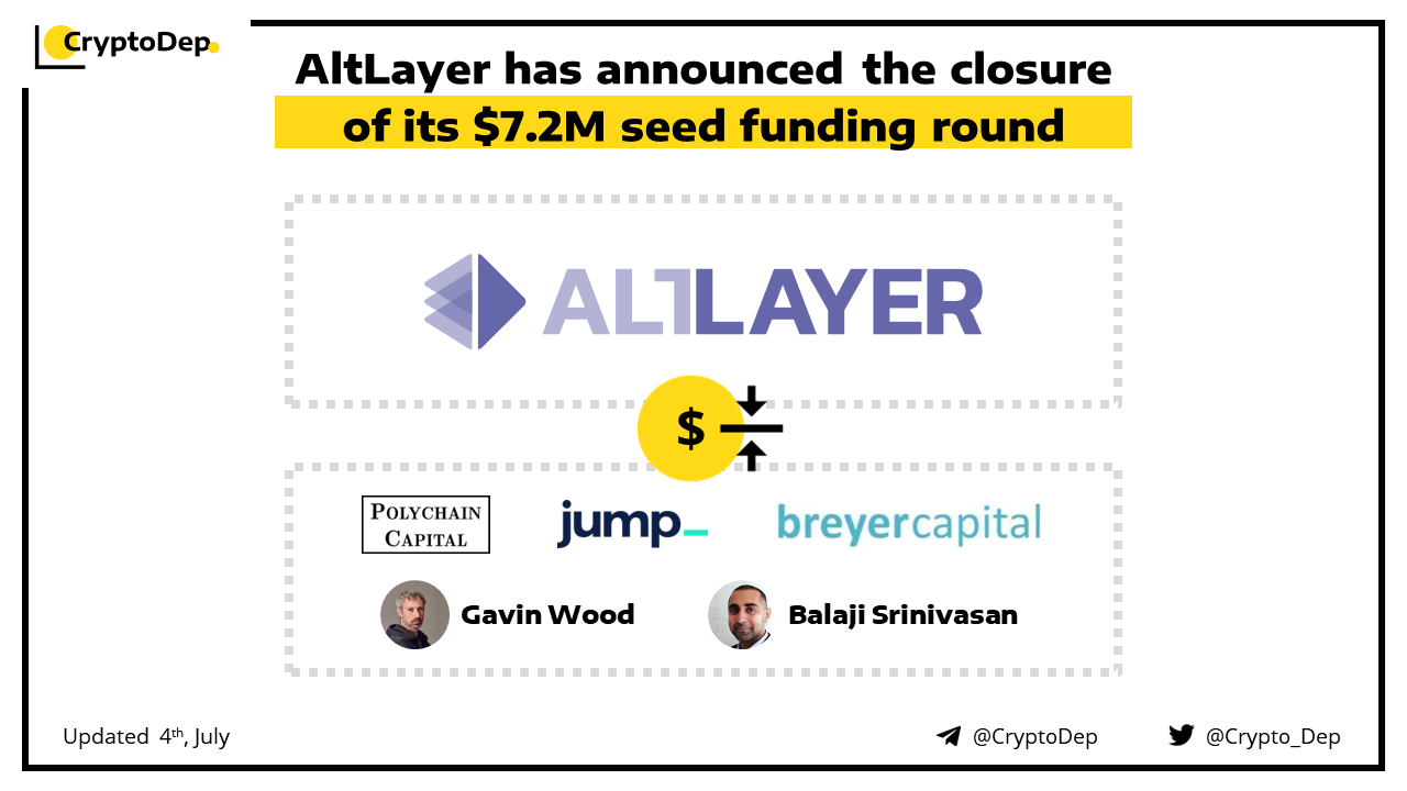 AltLayer, an Ethereum scaling startup, has raised $7.2M in a seed funding round, co-led by Polychain Capital, Jump Crypto, and Breyer Capital. Other investors in the round included Gavin Wood, Ethereum co-founder, and Polkadot founder; Balaji Srinivasan, a former Coinbase CTO and a former a16z general partner; Sean Neville, co-founder of Circle; and Kain Warwick and Jordan Momtazi, co-founders of Synthetix and Bodhi Ventures.