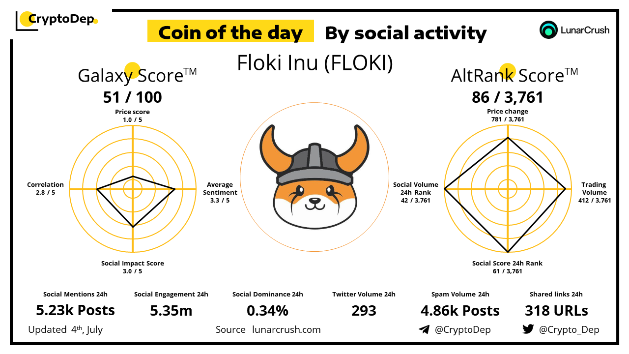 ββCoin of the day by social activity - Floki Inu (FLOKI).