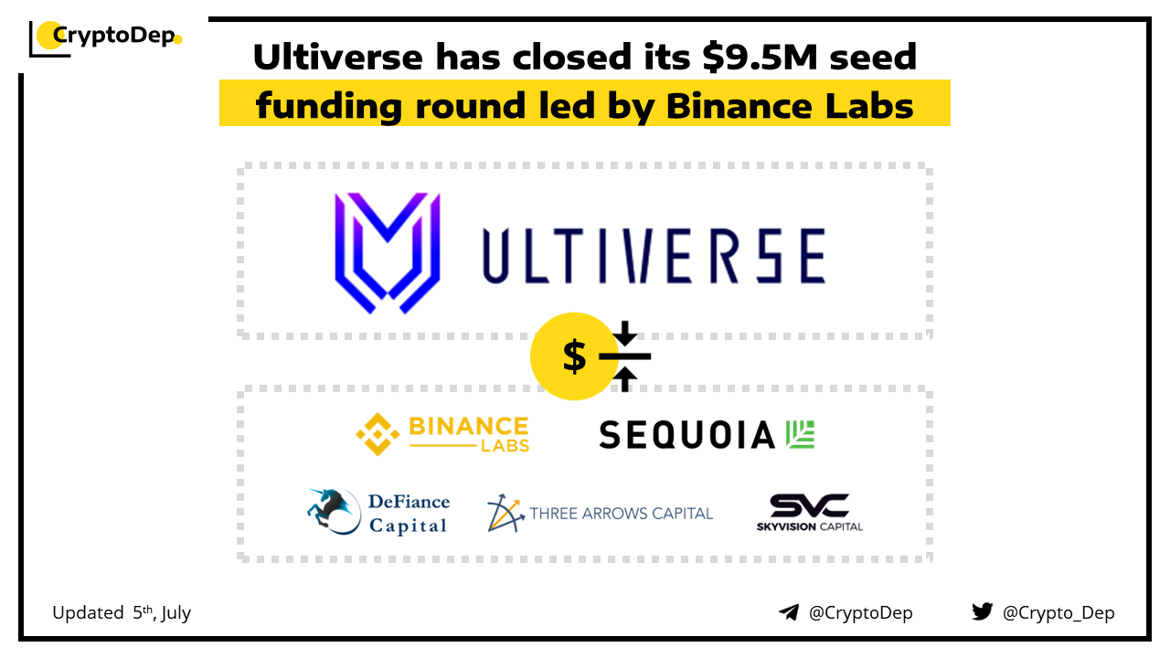 Ultiverse, a social gaming metaverse, has closed its seed funding round led by Binance Labs. Additional round investors included Sequoia, Three Arrows Capital, DeFiance Capital, and SkyVision Capital. Ultiverse is building the metaverse that connects Web3 with an immersive fully VR compatible virtual world with AAA quality.