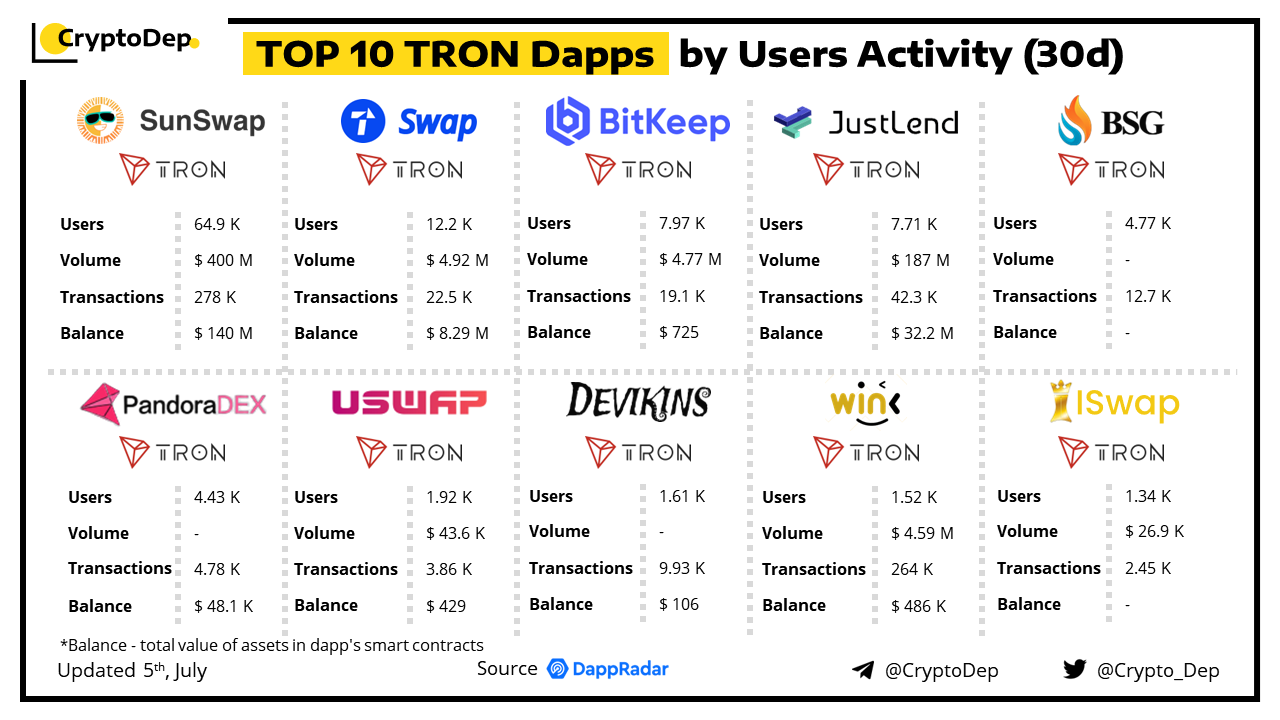 ββTOP 10 TRON Dapps by Users Activity (30d)