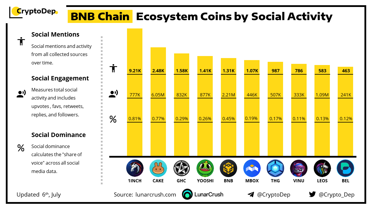 Social Engagement measures total social activity and includes upvotes, favs, retweets, replies, and followers.