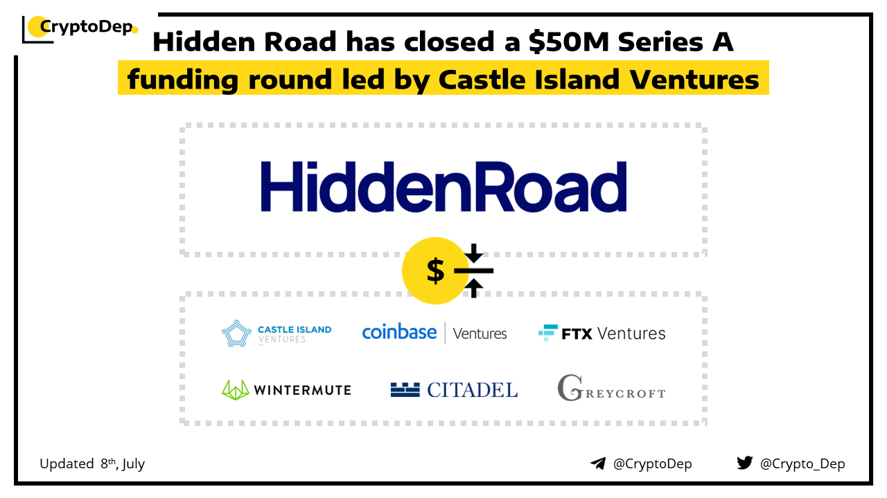 Hidden Road, a global credit network for institutional investors, has announced a closure of its $50M Series A funding round led by Castle Island Ventures, with participation from Coinbase Ventures, FTX Ventures, Wintermute, Citadel Securities, Greycroft, Uncorrelated Ventures, XBTO Humla Ventures, SLN Capital, Profluent Trading, and Corner Capital, among other.