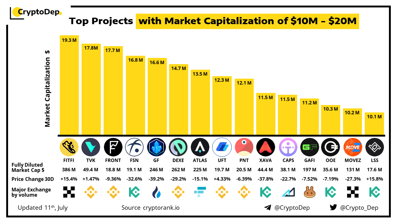 ββTop Projects with Market Capitalization of $10M - $20M