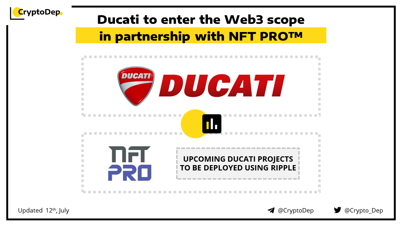 Ducati, the Bologna-based motorcycle manufacturer will launch a series of WEB 3.0 activities, that will be developed through the creation of new digital aggregation spaces, NFT collections, and opportunities to participate in the new activities typical of the WEB 3.0 universe. Upcoming Ducati projects will be deployed using Ripple.