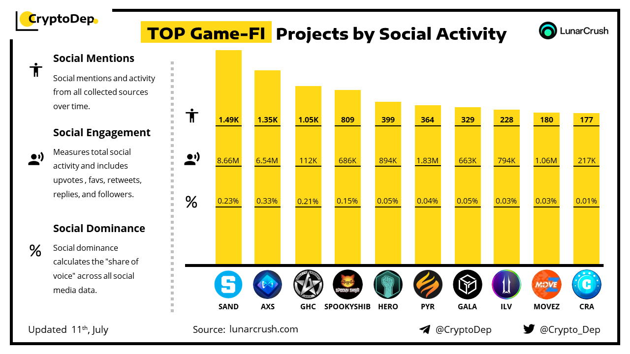 Social Engagement measures total social activity and includes upvotes, favs, retweets, replies, and followers.