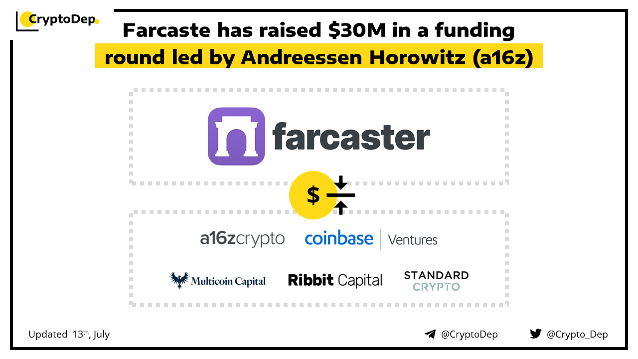 Farcaster, a decentralized social protocol, has closed a $30M funding round led by a16z with participation from Coinbase Ventures, Multicoin Capital, Ribbit Capital and others. The company has been testing Farcaster with clients and is now working on a second version of its protocol, with an aim to launch later this year.
