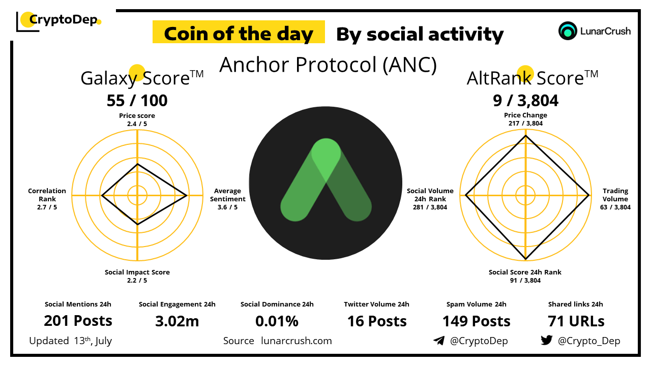 ββCoin of the day by social activity - Anchor Protocol (ANC).
