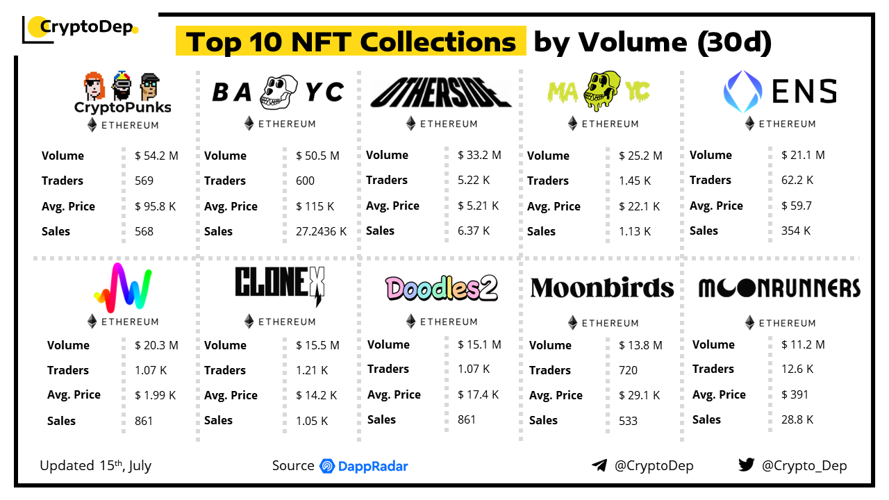 ββTop 10 NFT Collections by Volume (30d)