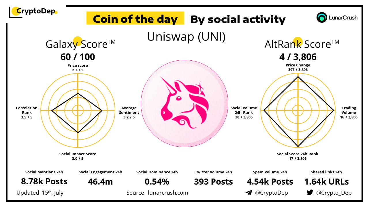 ββCoin of the day by social activity - Uniswap (UNI).