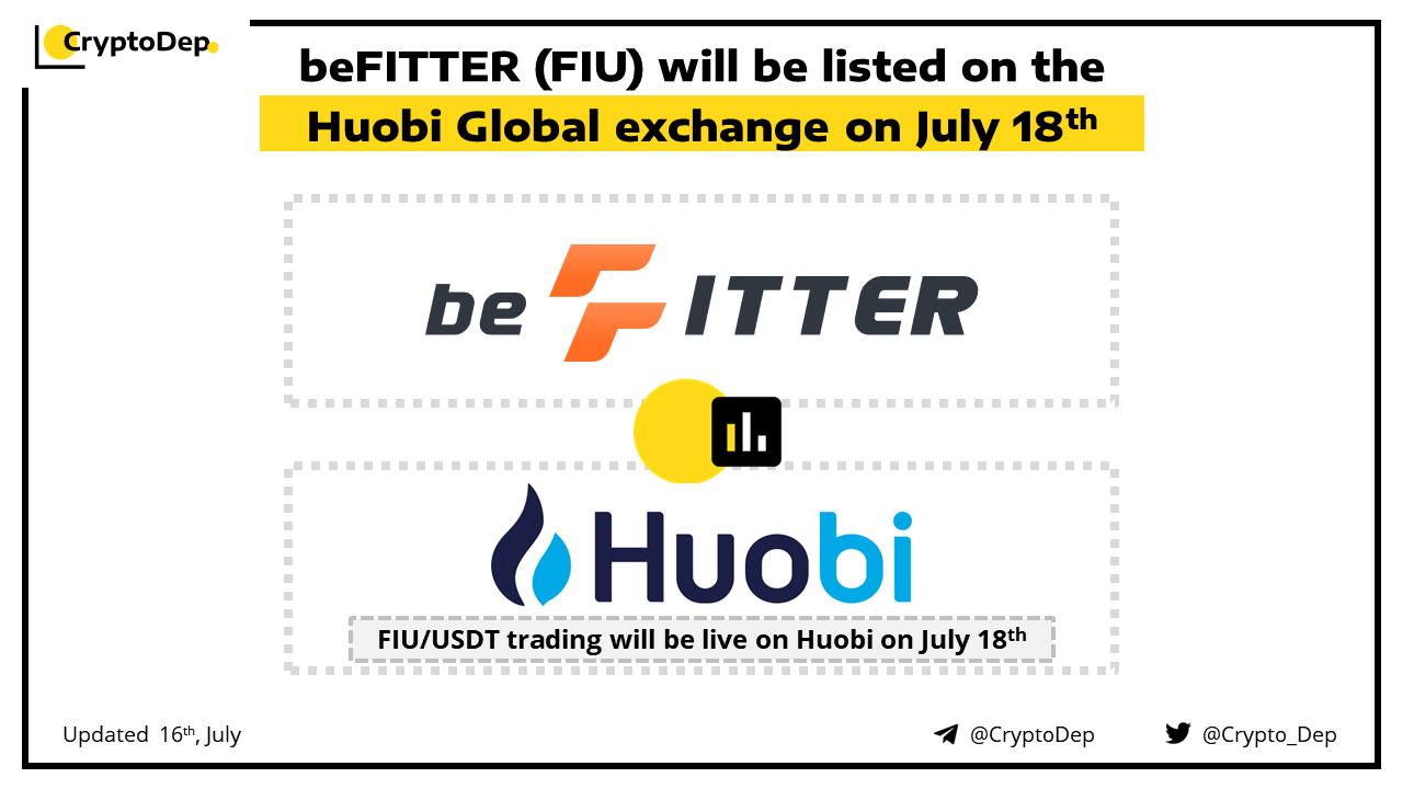 beFITTER (FIU) will be listed on the Huobi Global exchange on July 18th