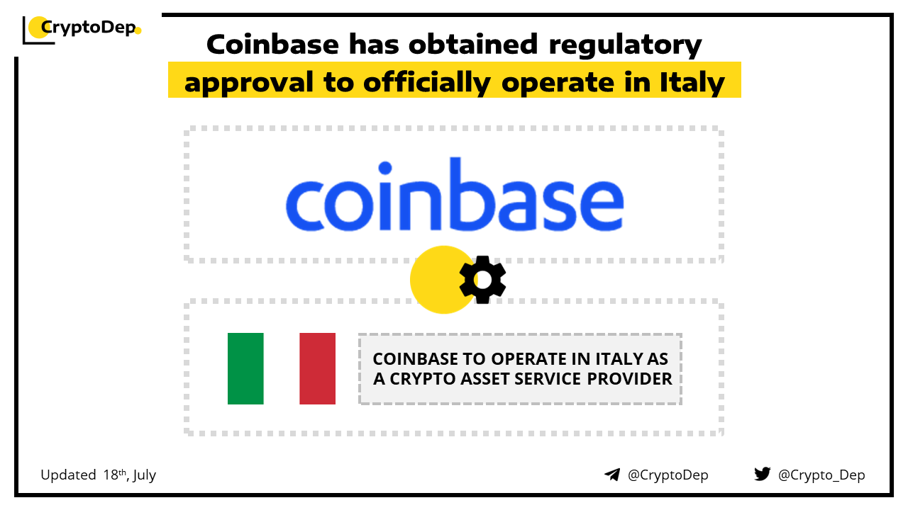 Coinbase has obtained regulatory approval to officially operate in Italy