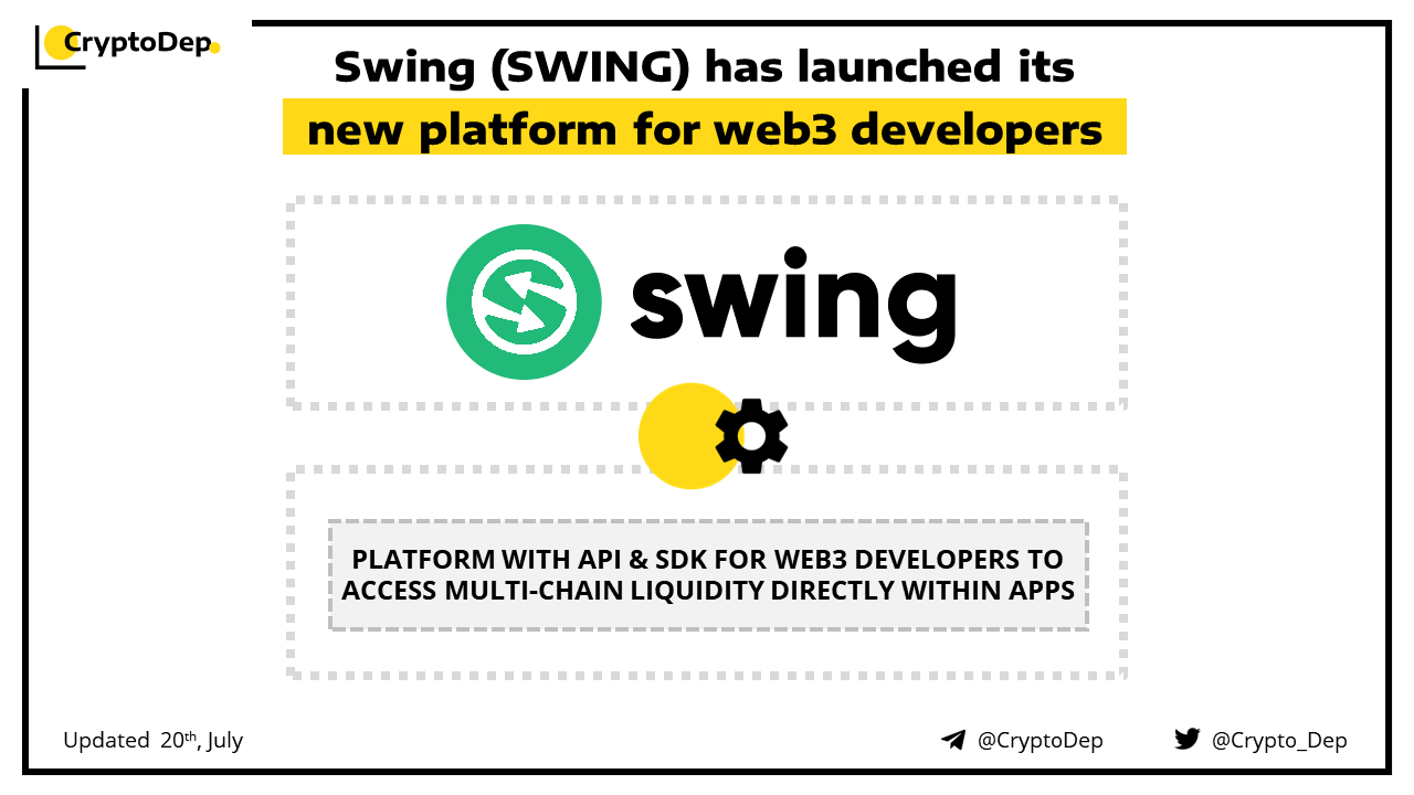 Swing has announced the release of its new site along with API & SDK services for Web3 developers. This update seeks to allow developers to access multi-chain liquidity directly within their apps. Swing is a decentralized cross-chain liquidity protocol that aggregates liquidity across blockchains.