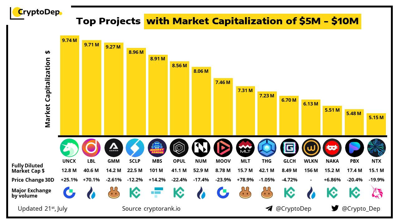 ββTop Projects with Market Capitalization of $5M - $10M