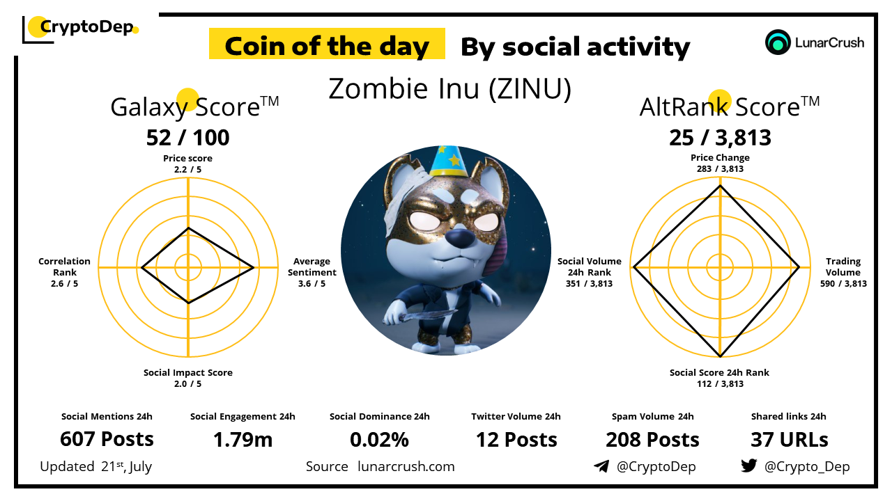 ββCoin of the day by social activity - Zombie Inu (ZINU).
