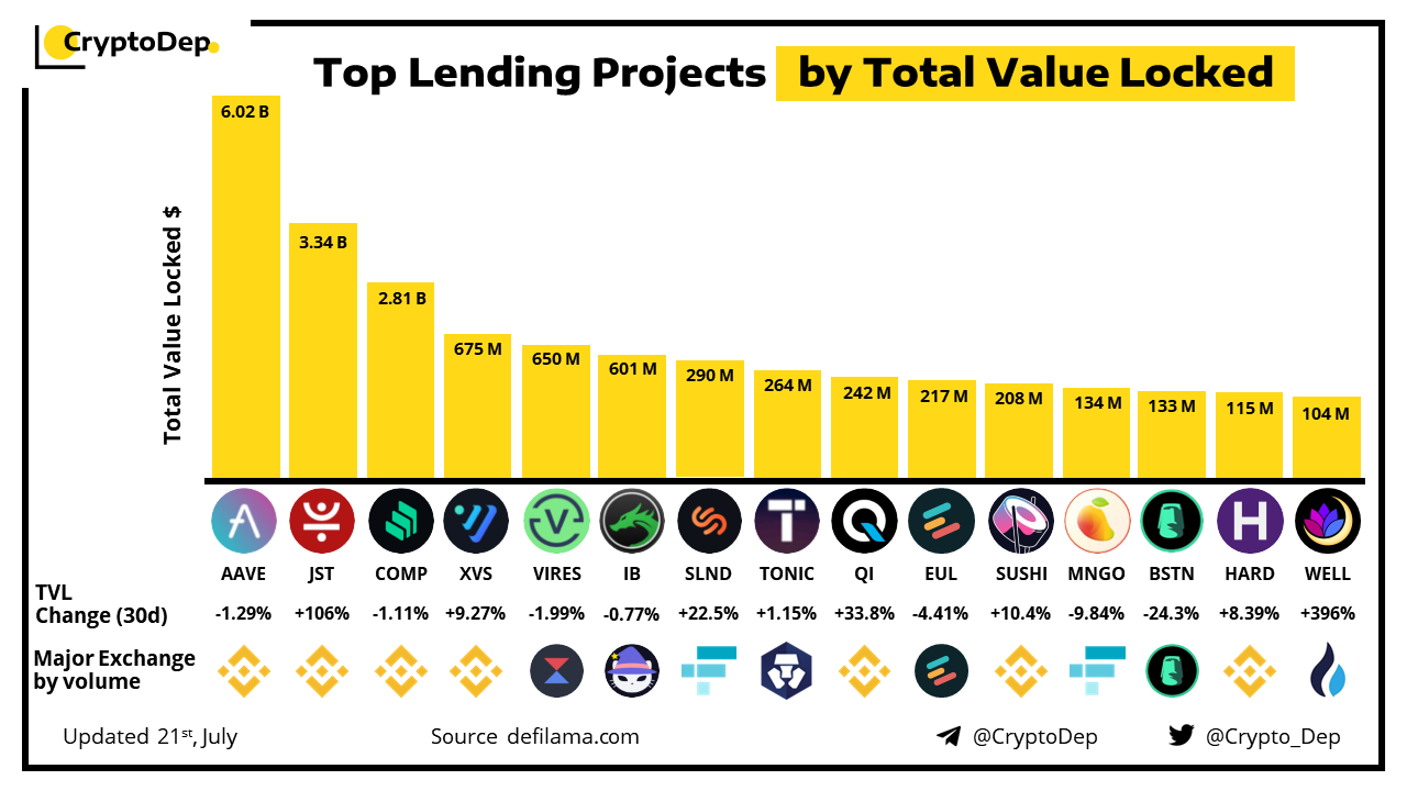 ββTop Lending Projects by Total Value Locked (TVL)