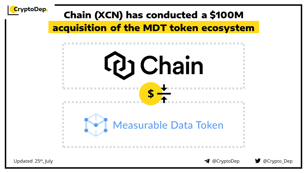 Chain, a blockchain infrastructure company, has successfully acquired Measurable Data Token ecosystem for $100M. The deal will provide Chain with a number of assets, including MDT, cash-back application RewardMe and financial data protocol MeFi. Moreover, the purchase will involve a merge between Chainโs XCN and MDT.