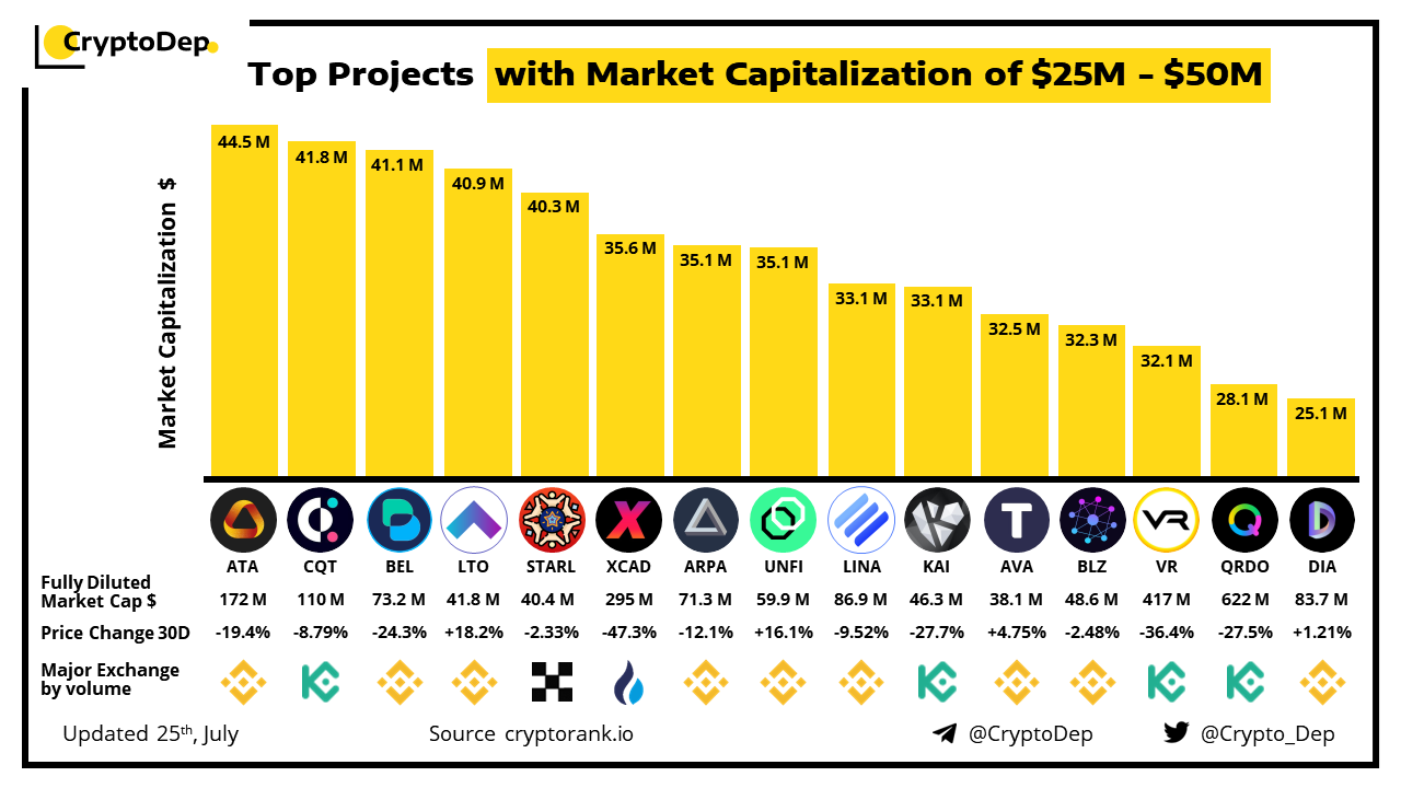 โโTop Projects with Market Capitalization of $25M - $50M