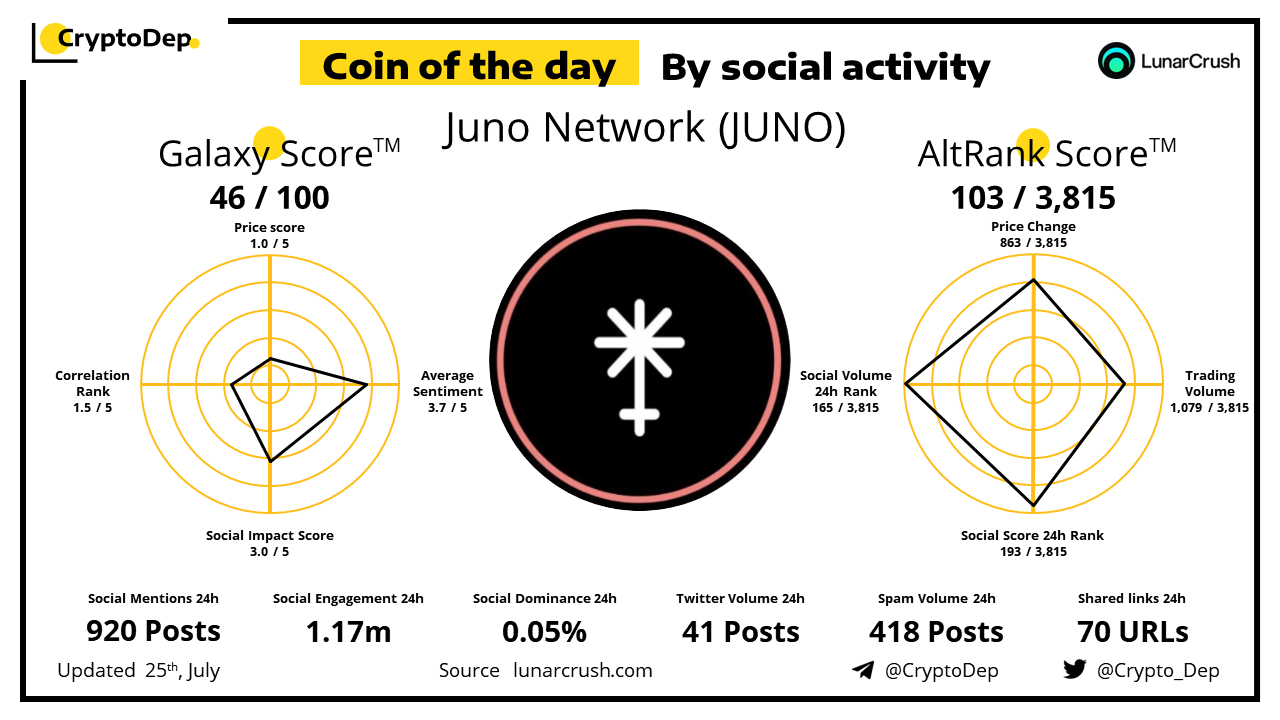 โโCoin of the day by social activity - Juno Network (JUNO)