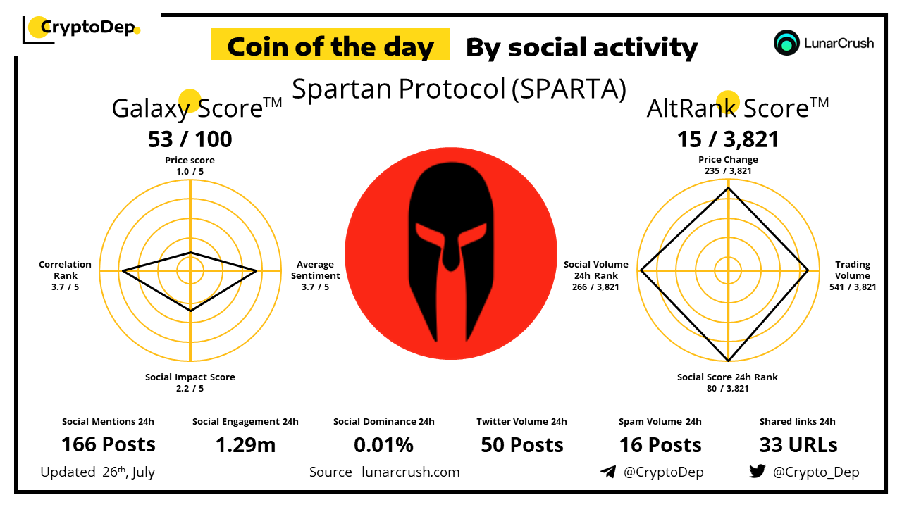 โโCoin of the day by social activity - Spartan Protocol (SPARTA)