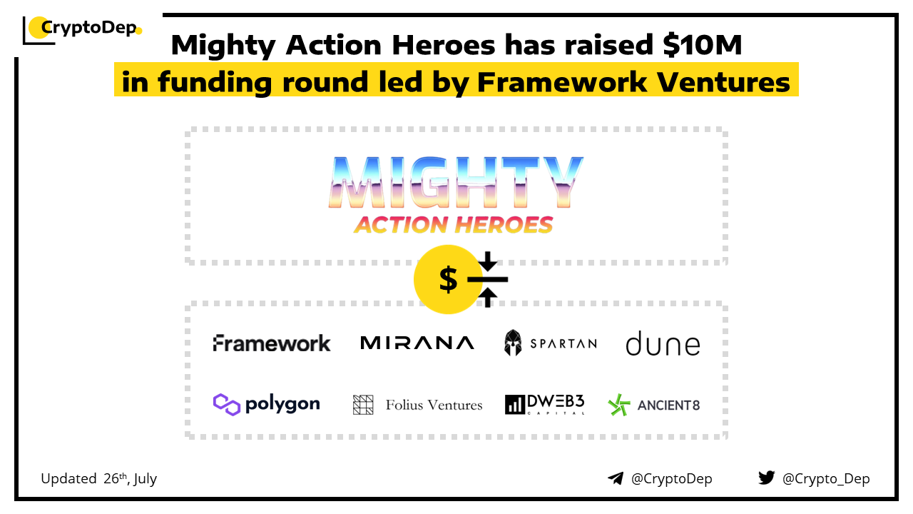Mighty Action Heroes, a multiplayer web3 Arena Battler game, has closed its $10M funding round led by Framework Ventures. Additional round investors included Mirana, Sfermion, Spartan, Dune Ventures, Sanctor Capital, Folius Ventures, Polygon, Play Future Fund, Everblue, Ancient8, Ready Player DAO, Razer, Avocado DAO, DWeb3, Great South Gate, mrblock and more. Mighty Action Heroes will release a genesis PFP collection ahead of the launch. PFP holders will also get early access to Mighty Action Heroes and collect in-game rewards and cosmetic items when the game.
