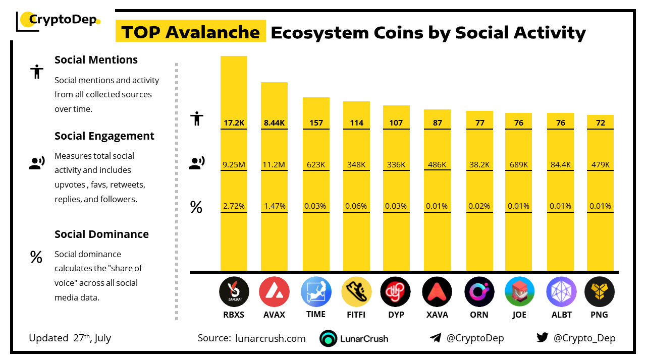 ββTOP Avalanche Ecosystem Coins by Social Activity