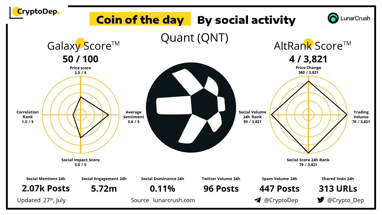 ββCoin of the day by social activity - Quant (QNT)