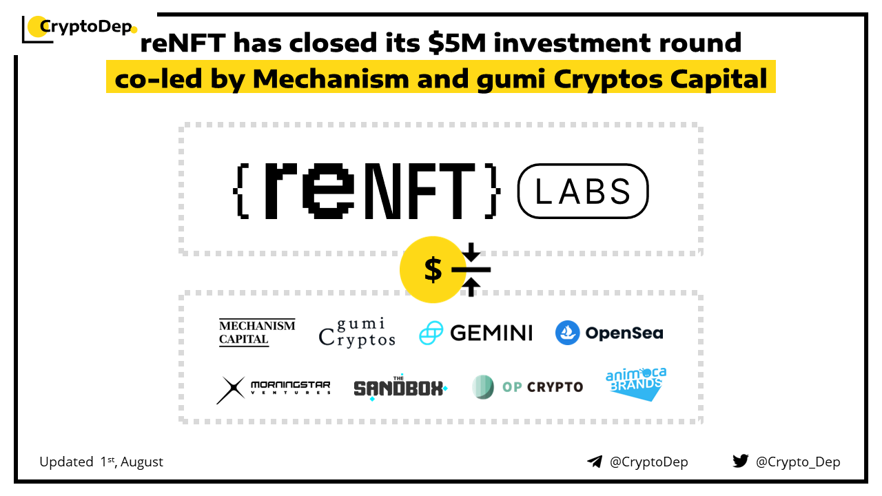 โโreNFT has closed its $5M investment round co-led by Mechanism and gumi Cryptos Capital