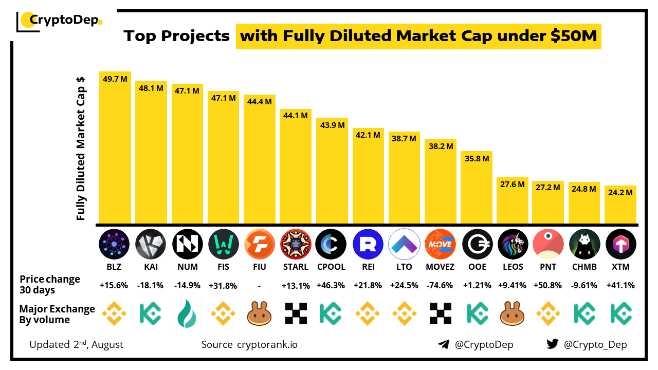 ββTop Projects with Fully Diluted Market Cap under $50M