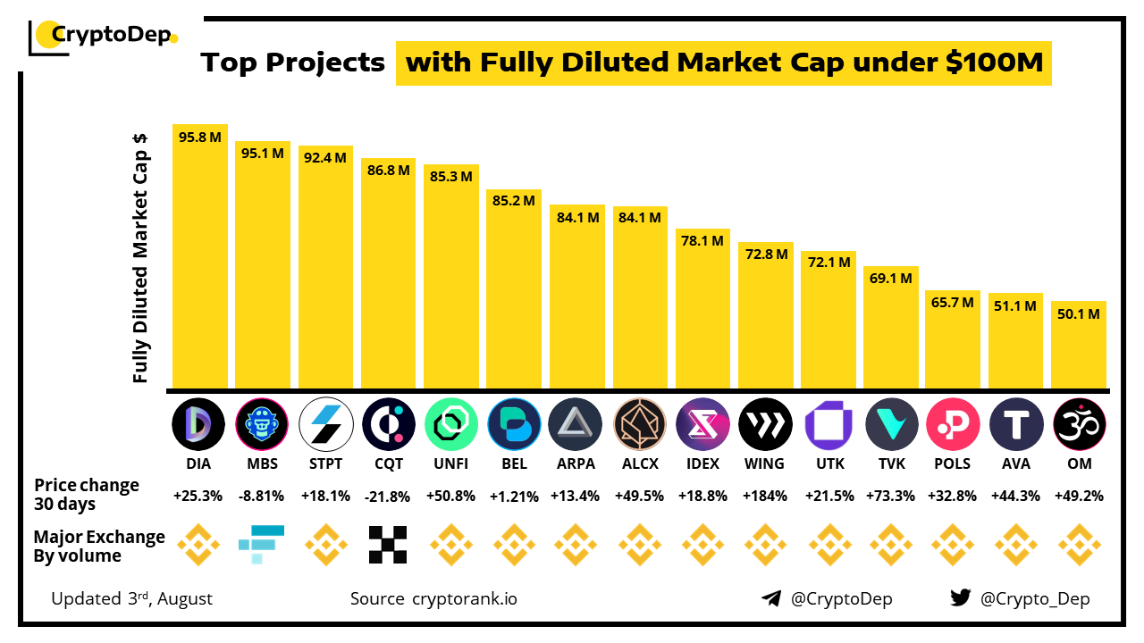 ββTop Projects with Fully Diluted Market Cap under $100M