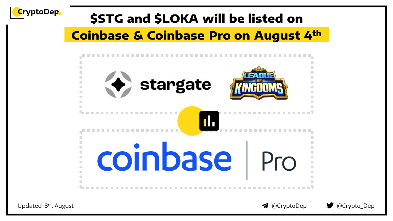 ββStargate Finance (STG) & League of Kingdoms (LOKA) will be listed on Coinbase & Coinbase Pro on August 4th