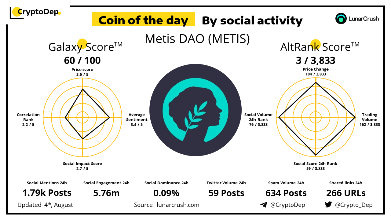ββCoin of the day by social activity - Metis DAO (METIS).