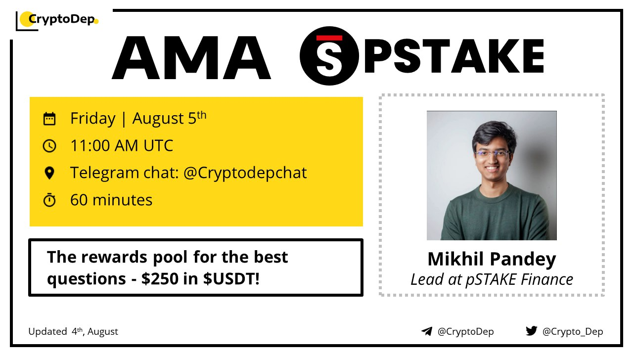 ββπ Dear community, CryptoDep will host an AMA with pSTAKE $PSTAKE team on Friday, 5th of August, at 11:00 AM UTC in the CryptoDep Chat