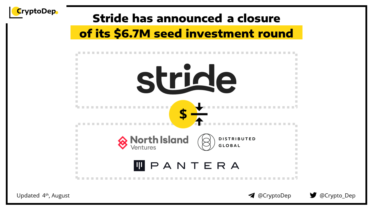 Cosmos staking protocol Stride has closed a $6.7M seed round co-led by North Island VC, Distributed Global, and Pantera Capital. Other investors in the seed round included 1Confirmation, Cerulean Ventures, Node V, Cosmostation and Everstake. Stride currently offers liquid staking for Cosmos Hubβs ATOM token and aims to support multiple Cosmos assets by the end of the year.