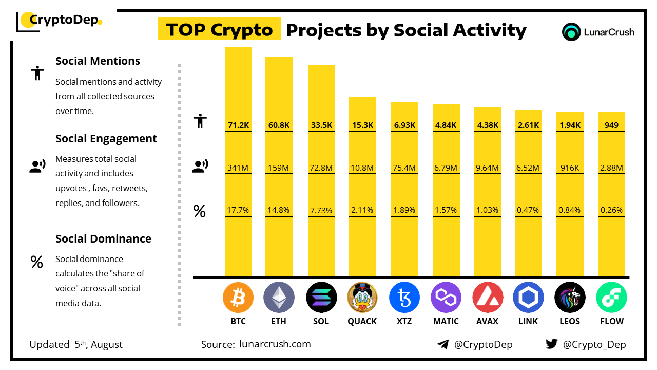 Social Engagement measures total social activity and includes upvotes, favs,retweets, replies, and followers.