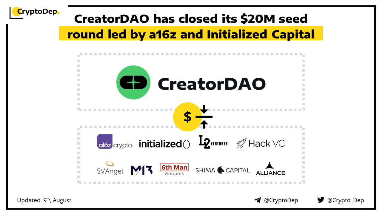 ββCreatorDAO has closed its $20M seed round led by a16z and Initialized Capital