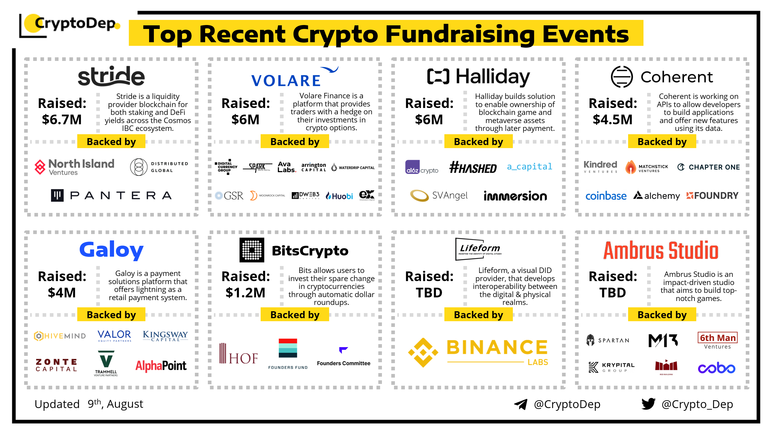 We are excited to present a list of some recent crypto fundraising events, backed by well-known investors such as a16z, Binance Labs, Coinbase Ventures, Hashed, Pantera Capital, Digital Currency Group, Arrington Capital, Ava Labs, Huobi Ventures, GSR, and others. Let's take a look!