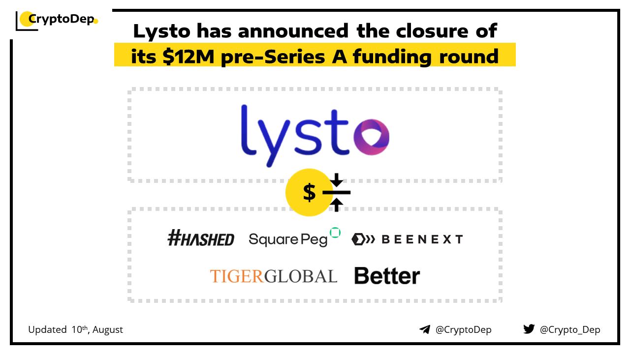 Lysto, a blockchain startup that is building verification tools for gamers, has closed $12M pre-Series A funding round co-led by Hashed, Square Peg, and Beenext. Tiger Global and Better Capital participating have also joined the round. Lysto's proof of play protocol is currently live on Polygon in the beta phase.