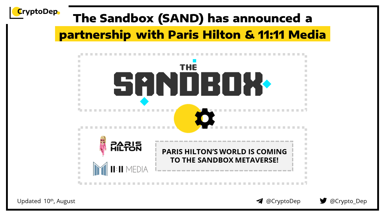 ββThe Sandbox (SAND) has announced a partnership with Paris Hilton & 11:11 Media