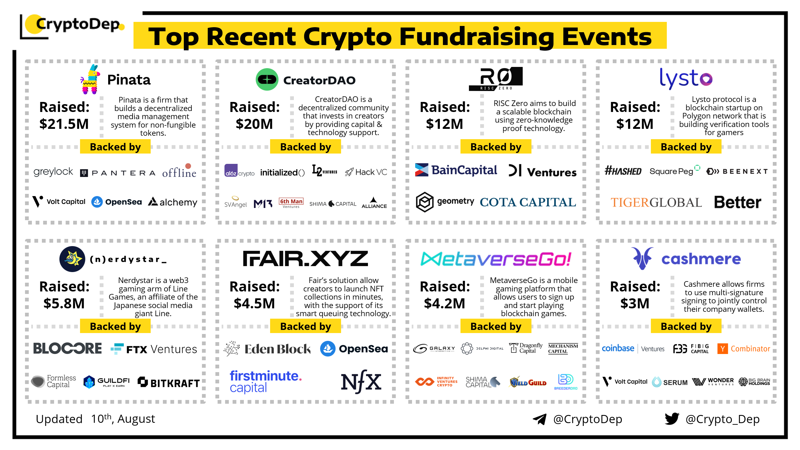 We are excited to present a list of some recent crypto fundraising events, backed by well-known investors such as a16z, Binance Labs, Coinbase Ventures, Hashed, Pantera Capital, Digital Currency Group, Arrington Capital, Ava Labs, Huobi Ventures, GSR, and others. Let's take a look!
