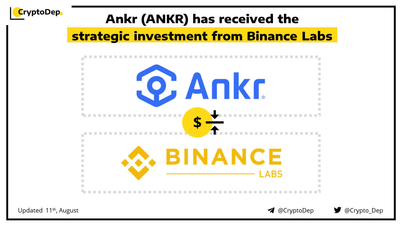 Binance Labs has announced the strategic investment in Ankr to assist in further improving the scalability of blockchain networks. The funds will go toward ramping up the work on Ankrβs remote procedure call (RPC) service and building out its Web3 developer suite. Moreover, Ankr launched its updated network Ankr 2.0 version with new $ANKR staking today, on August 11th.