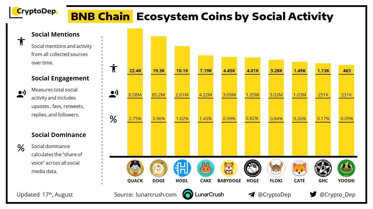 Social Engagement measures total social activity and includes upvotes, favs,retweets, replies, and followers.