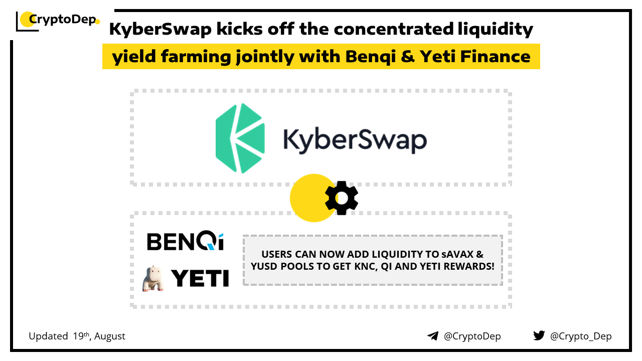 KyberSwap kicks off the concentrated liquidity yield farming jointly with Benqi & Yeti Finance
