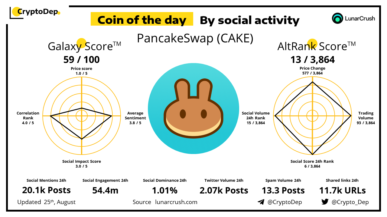 ββCoin of the day by social activity - PancakeSwap (CAKE).