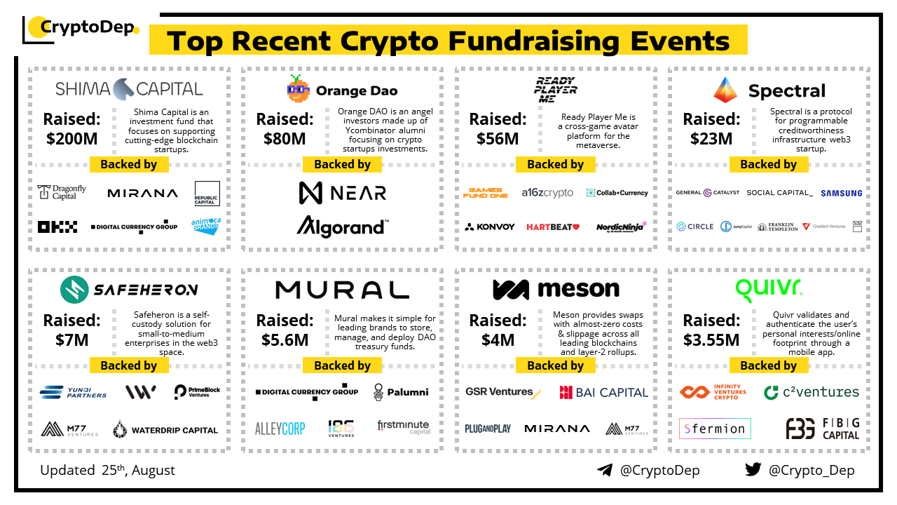We are excited to present a list of some recent crypto fundraising events, backed by well-known investors such as a16z, Circle Ventures, Animoca Brands, Republic Capital, Dragonfly Capital, Digital Currency Group, Infinity Ventures Crypto, FGB Capital, Jump Capital, OKX Blockdream Ventures, Waterdrip Capital, Mirana Ventures, Near, Algorand, and others. Let's take a look!