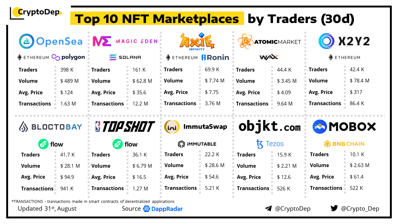ββTop 10 NFT Marketplaces by Traders (30d)