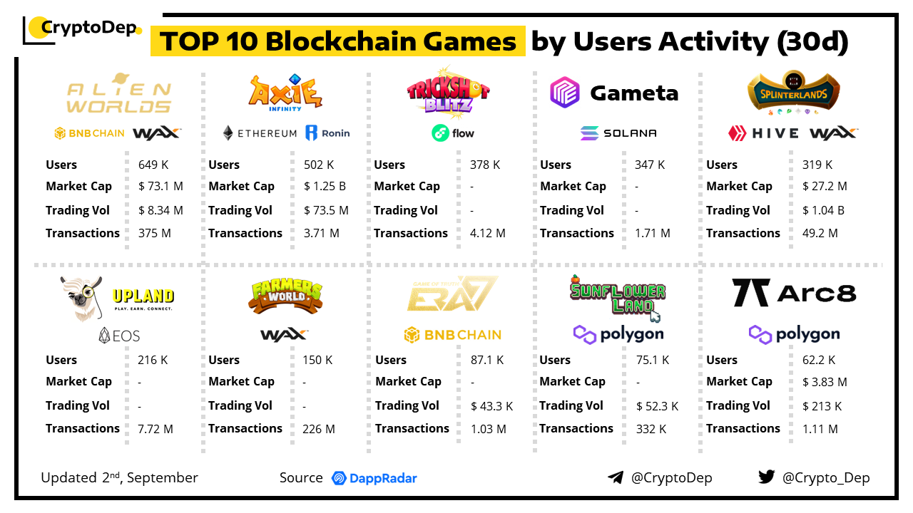 ββTop 10 Blockchain Games by Users Activity (30d)