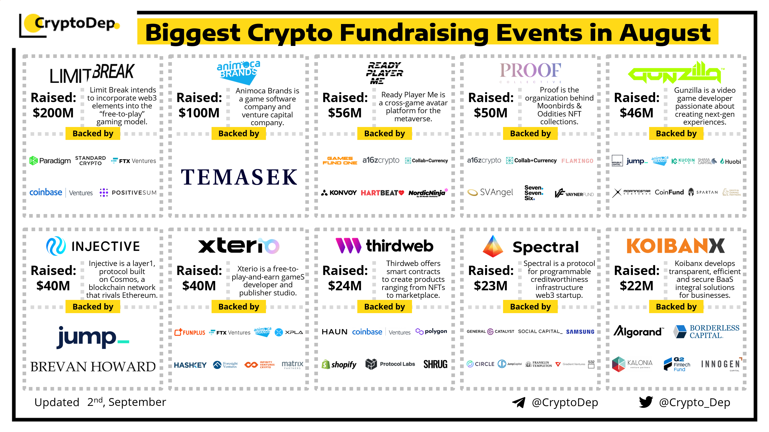 We are excited to present a list of some biggest crypto fundraising events of August 2022, backed by well-known investors such as a16z, Paradigm, Coinbase Ventures, FTX Ventures, Jump Capital, Circle Ventures, CoinFund, Haun Ventures, Animoca Brand, Hashkey, Morningstar Ventures, Republic Capital, Kucoin Labs, Huobi Ventures, Infinity Venture Crypto, GSR, and others. Let's take a look!