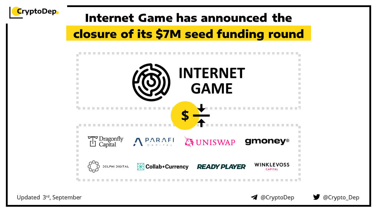 Internet Game, a project that has described itself as βHQ Trivia meets NFTs,β has closed a $7M seed round. Investors in the round include HQ Trivia co-founder Rus Yusupov, ParaFi Capital, Dragonfly Capital, Dephi Digital, Uniswap Ventures, Collab+Currency, Gmoney, Milk Road, Ready Player DAO and Zedd, co-founder of Magic Eden. Internet Game has begun minting access tokens for its second season, named Bear Market Battle.