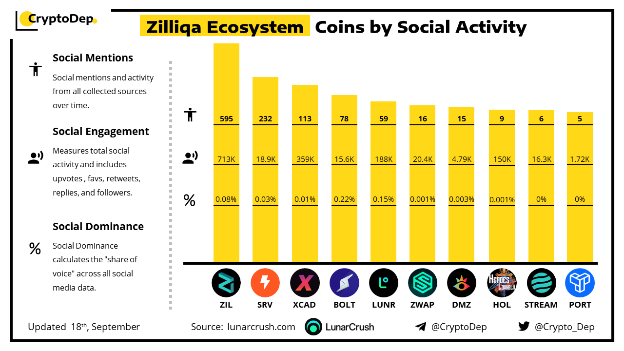 ββZilliqa Ecosystem Coins by Social Activity